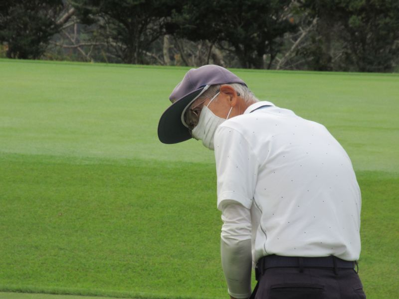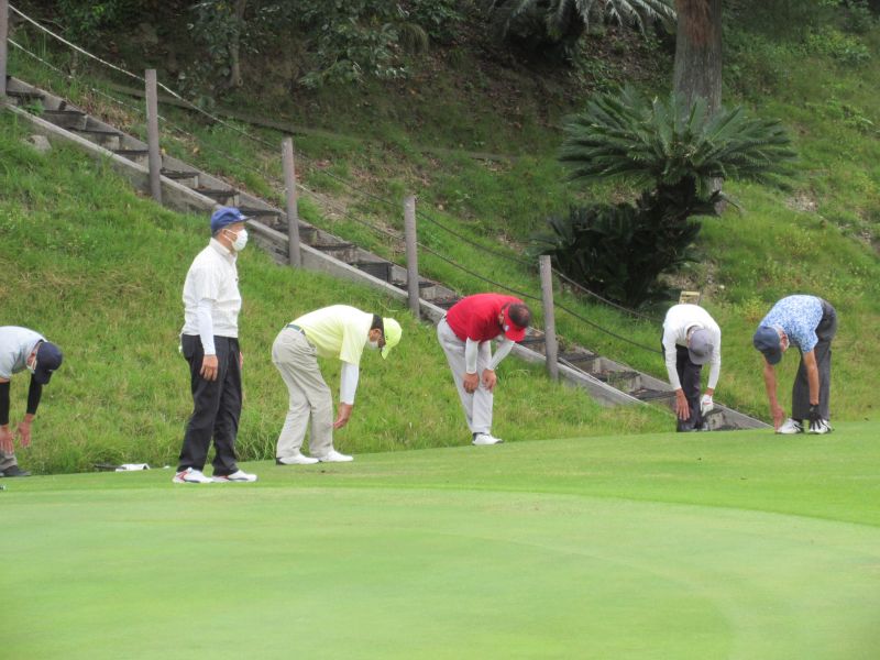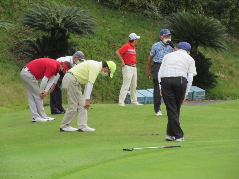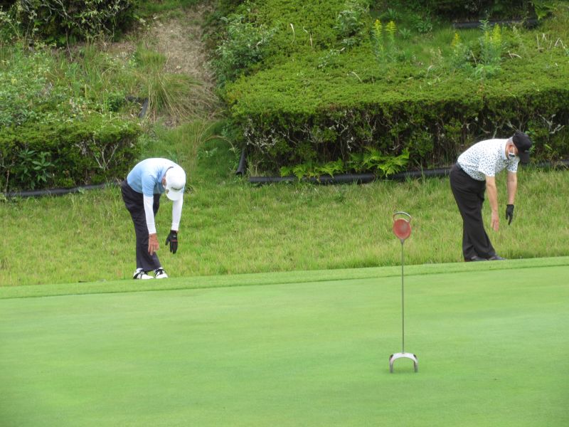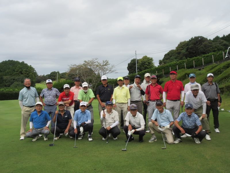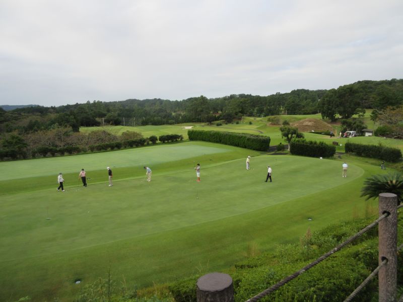 年間計画策定の際に、この日が東京オリンピック開催の可否により祭日・平日が分れる予測からゴルフ場と調整してどちらになっても平日料金扱いにすることを条件に設定・・結果はオリンピック開催により、平日扱いとなった。 当日は、雲が多いものの雨の心配はなく22名の参加者は時間前に集合し、練習に励んでいた。