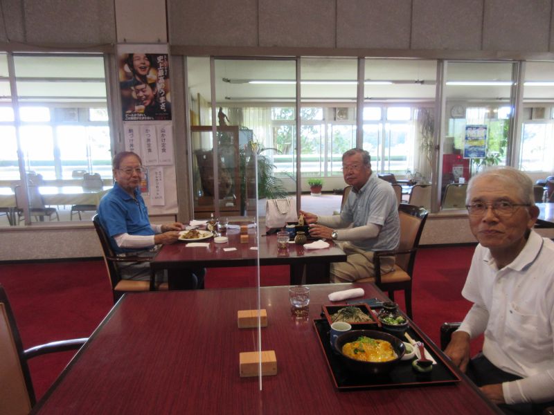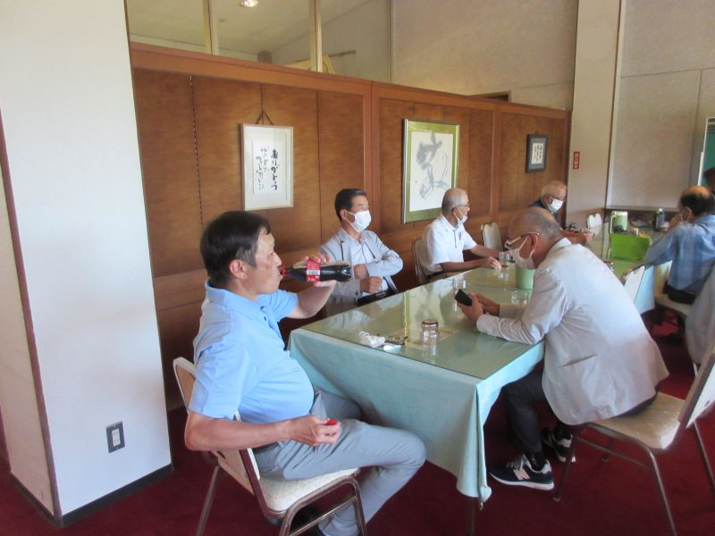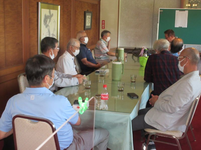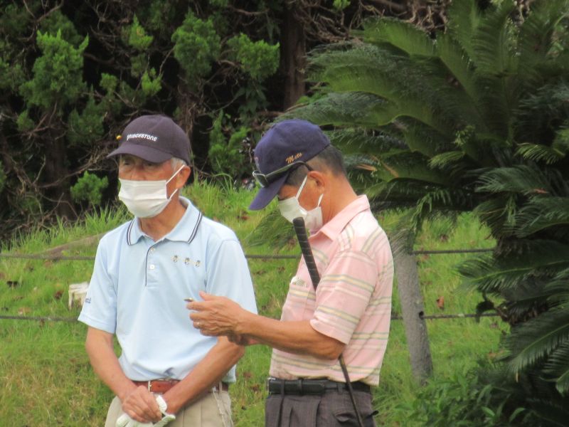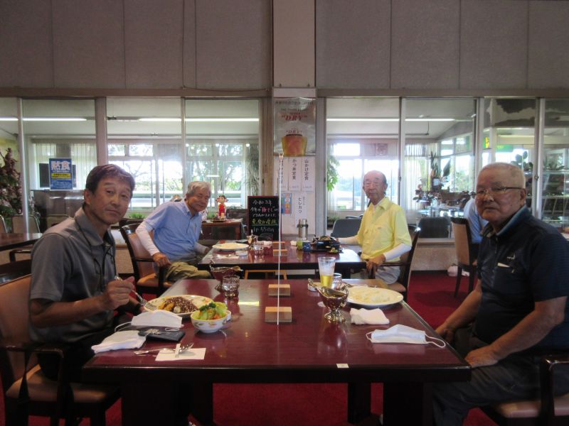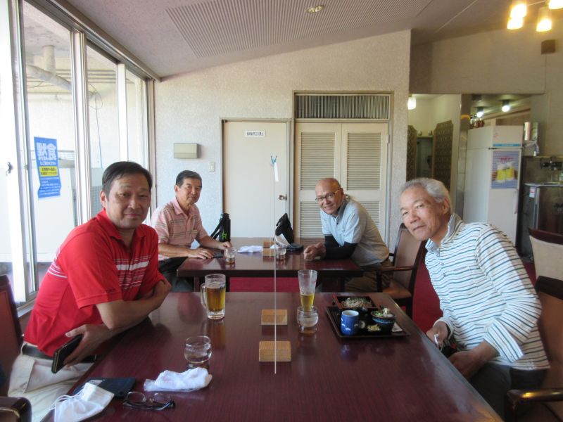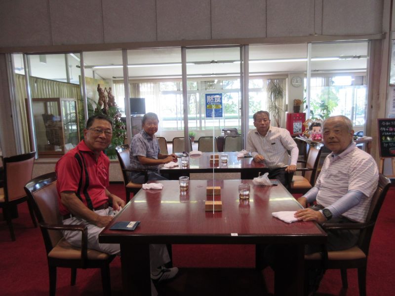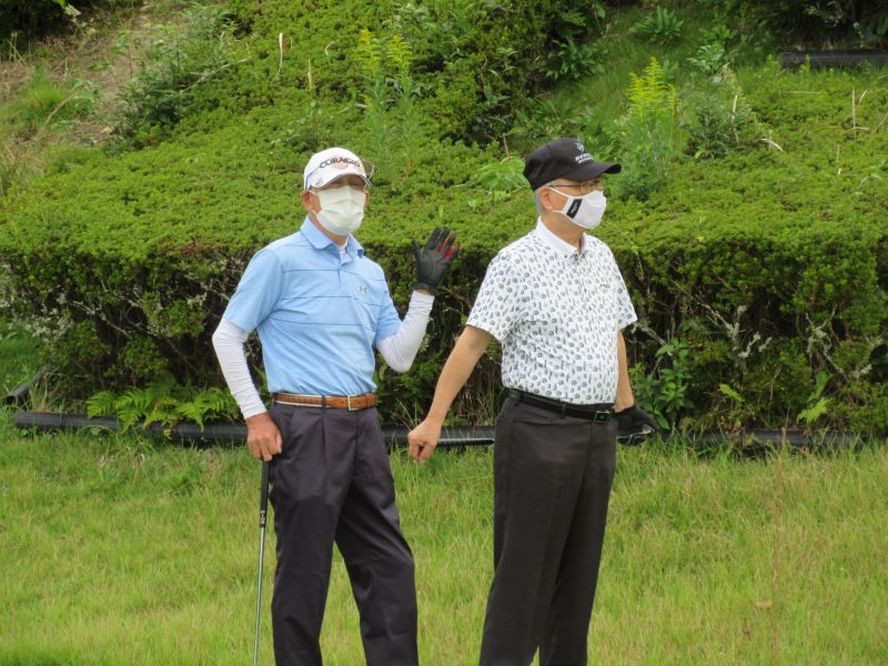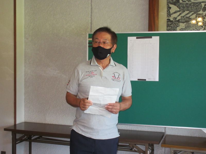 今回も、高木(善)さんの会長代行挨拶に始まり、幹事からコロナ感染防止への対策に万全を期すことや本日の賞の紹介、体操も行い集合写真撮影後 OUT/INに別れて急いでスタートホールへ!(実は、体操の途中でキャディが時間です!と呼びに来た為)