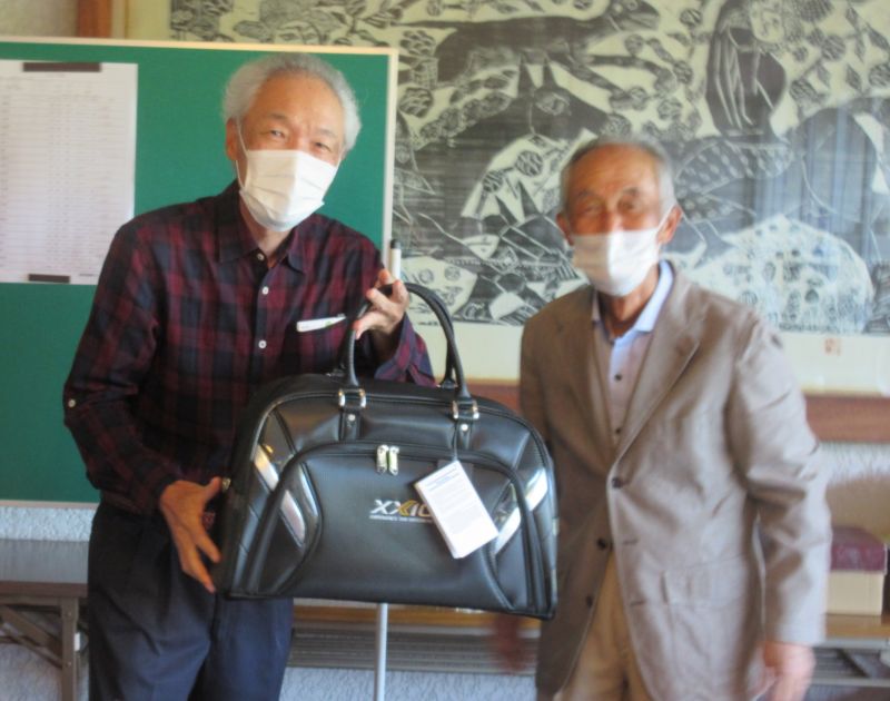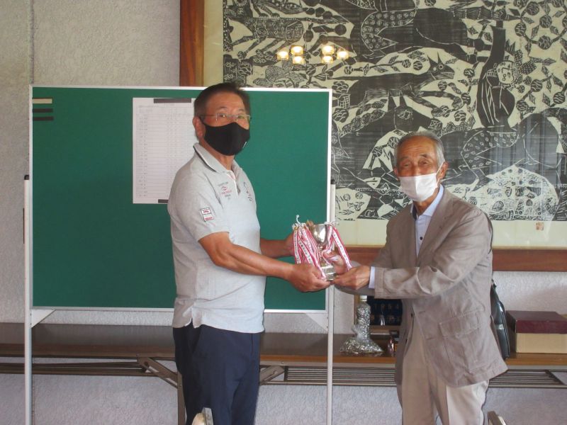 そんな中でも、冷静に正確なショットを武器に優勝を勝ち取ったのが高木(善)さん 準優勝は議会の予定を縫って参加の草賀さん 3位古屋(定)さんがそれぞれ入賞! 優勝の高木(善)さんは、メンバーに恵まれた事と今日は前から打ったことが勝因とカップを手に喜びのコメント。ラッキー7のボストンバッグは福田さんが持ち帰った。
