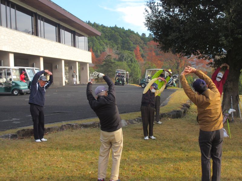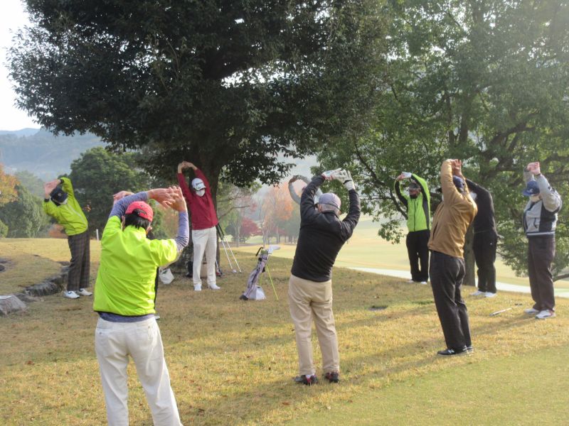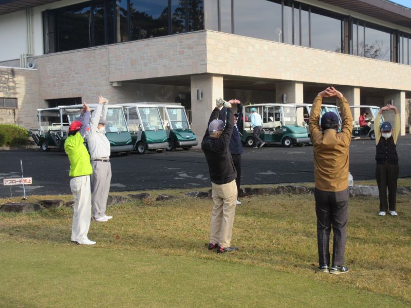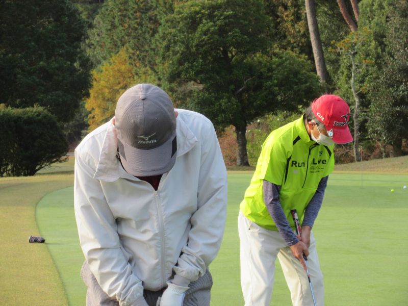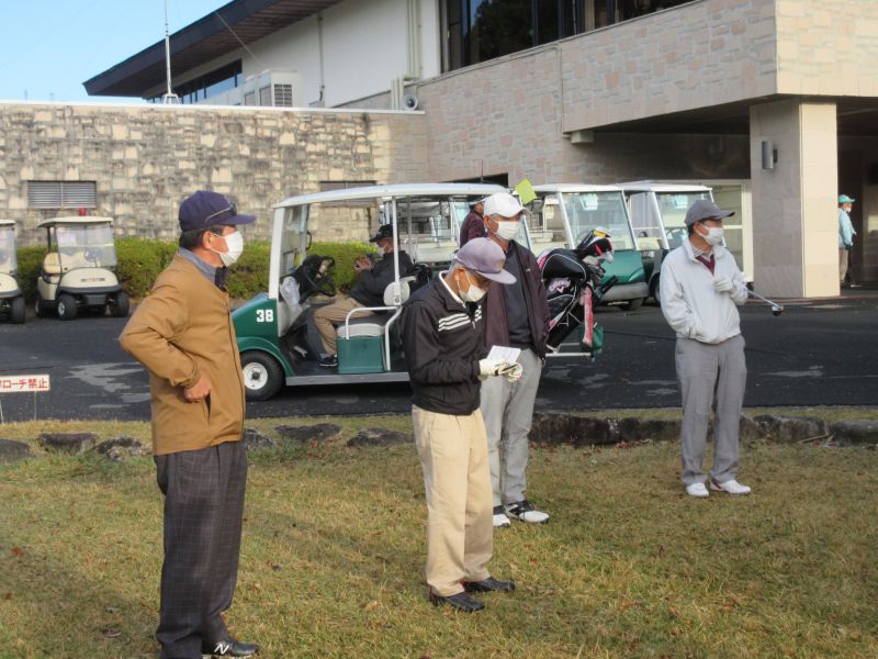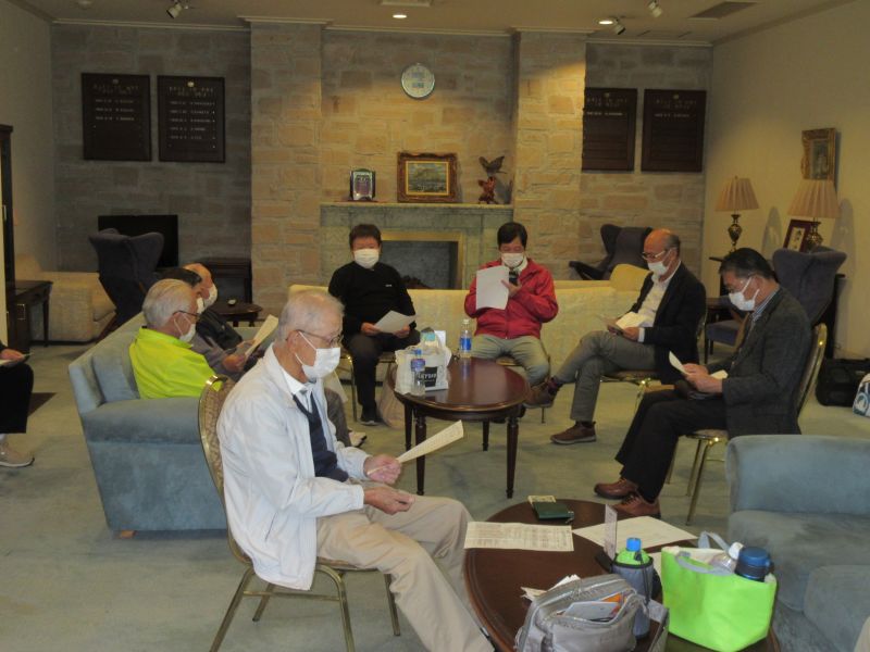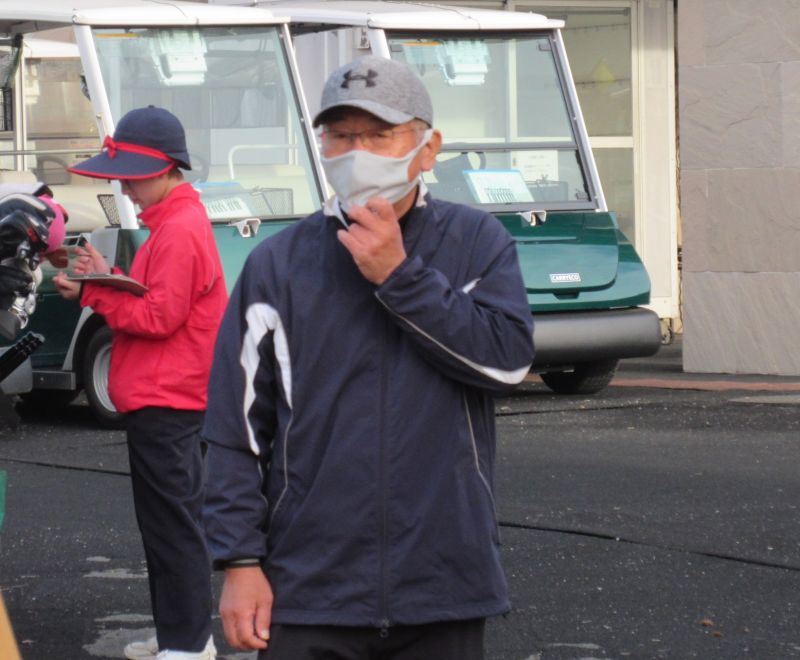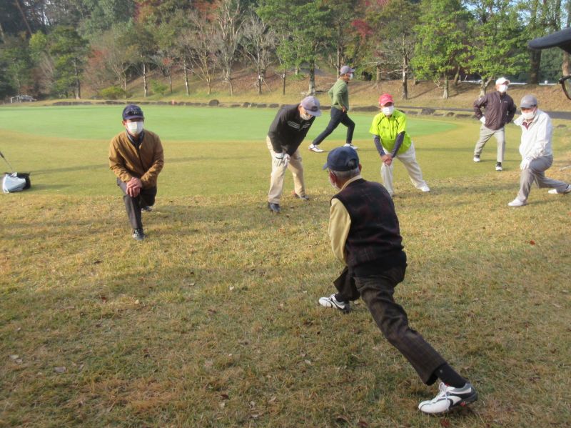 当日は文句のつけようがない好天に恵まれ参加者は笑顔で集合。今回も高木(善)さんによる会長代行挨拶を始め幹事からコロナ対策の徹底と本日の賞を披露。ストレッチ体操も入念に行い笑いの中全員でマスクを外してカメラに収まる。プレーの途中では暑い!と上着を脱ぐ参加者もいたぐらい青空が広がり風もほとんど感じないコンディションに好スコア続出!でも、グリーンのアンジュレーションに「何ちゅうグリーンや!」と、ぼやく参加者がいたのも事実。