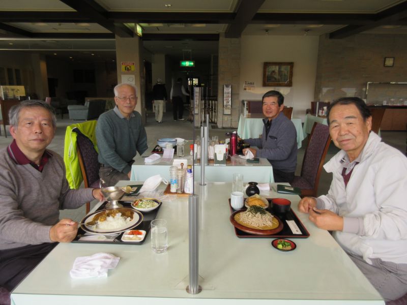 - 昼食時の光景 川東さん、高木(修)さん、山崎さん、川上さん(左から)