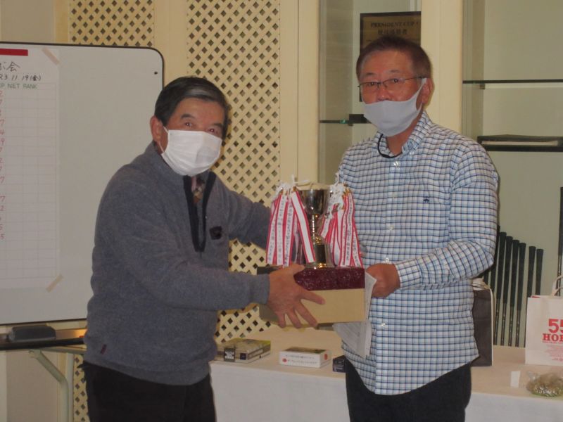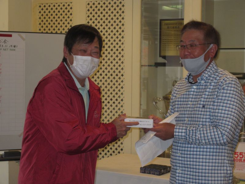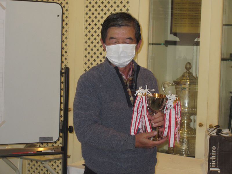結果は、僅差で石井さんが優勝、準優勝に高木(修)さん、3位川上さんが入賞。優勝の石井さんは良い仲間と天気に恵まれたこと 1週間前に新城ででプレーしたことが良かったかな? 約12年ぶりの勝利 嬉しいとのコメント。ラッキーセブンに唐澤さん、BB賞に田辺さん、当月賞に草賀さんがゲット。 草賀さんは当月賞を社会貢献にと寄付を申し出ると参加者から拍手が起きたところでお開きとした。