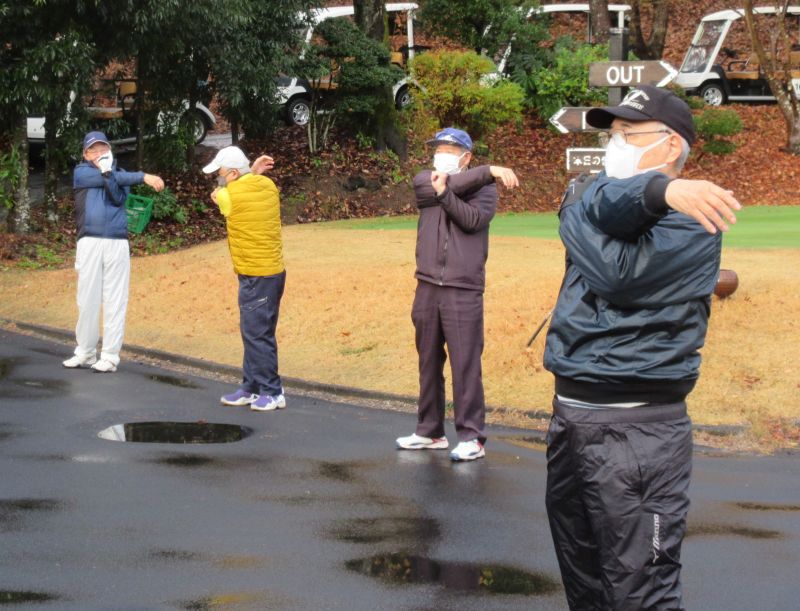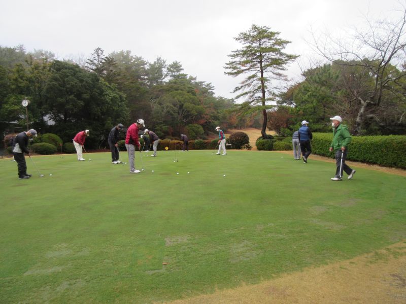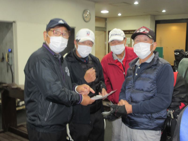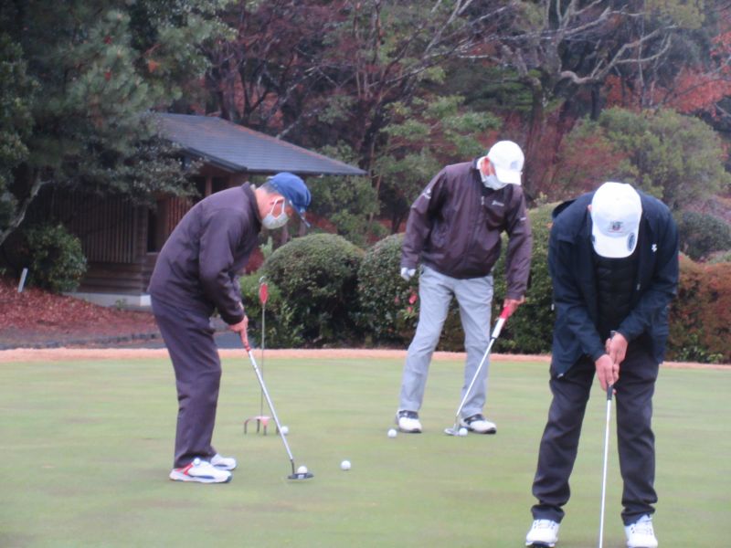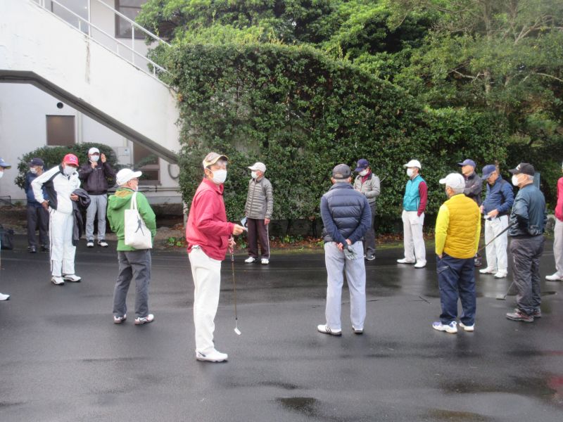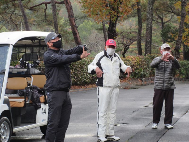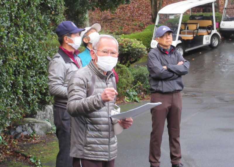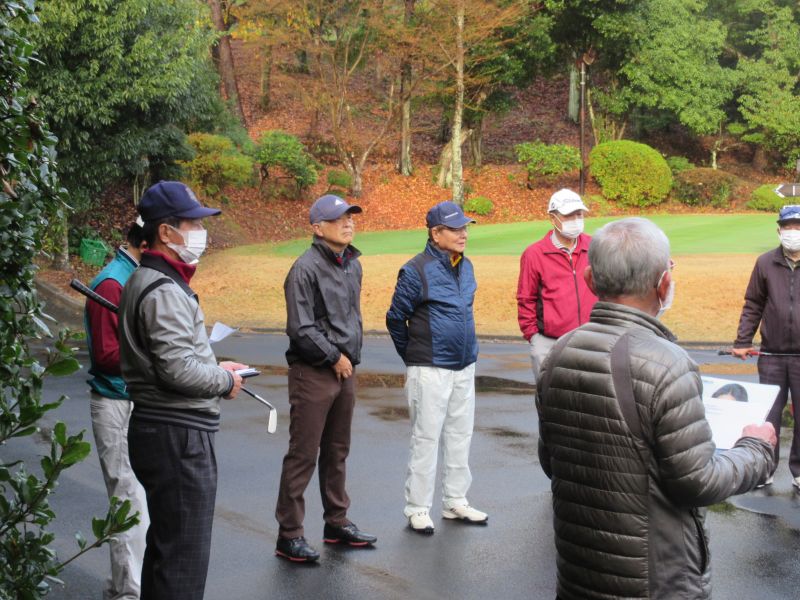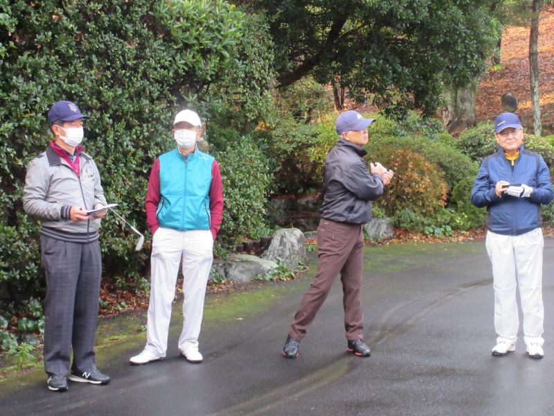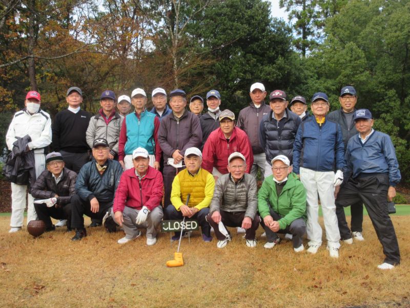 コロナ禍の中、松愛会静岡支部の活動も停滞気味で会合や同好会も中止が相次ぐ中、しょうぶ会は年間計画通り 12月のコンペを17日(金)静岡カントリークラブ袋井コースで22名の参加を得て開催 前夜遅くからの雨を気にしながら集まった参加者も集合時間には雨も上がり 練習グリーンで練習を開始、このころには少しだが青空も見えてきた。皆さん、笑顔の中 開会式を始め、新加入の照井さんの自己紹介 コロナ防止対策への注意事項に続き昨日焼津で仕入れたカニを始め各賞を紹介し、気合の入ったストレッチ体操を行いマスクを外して集合写真撮影後、OUT/INに分かれてスタートして行った。(会長の挨拶を忘れた・・・ゴメン)