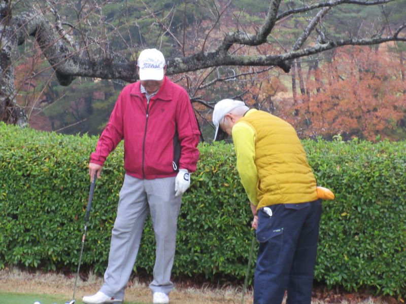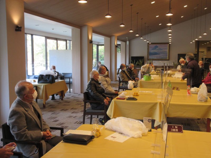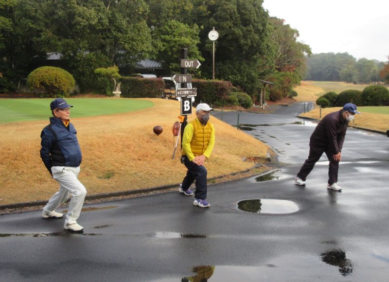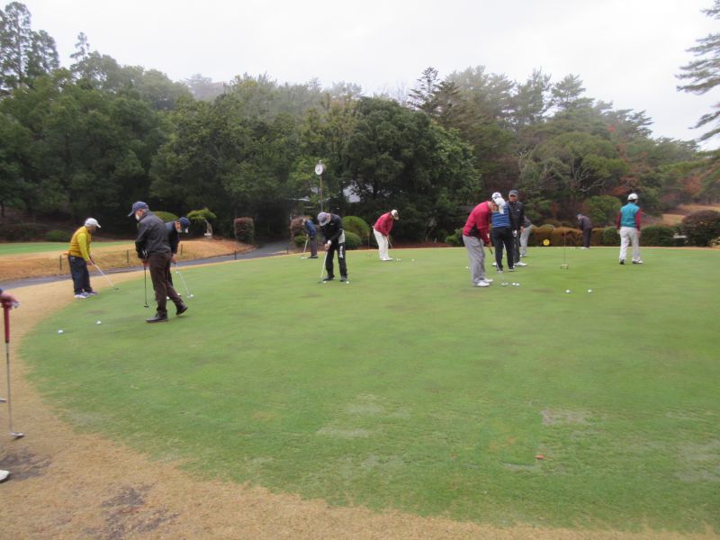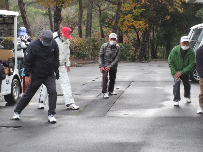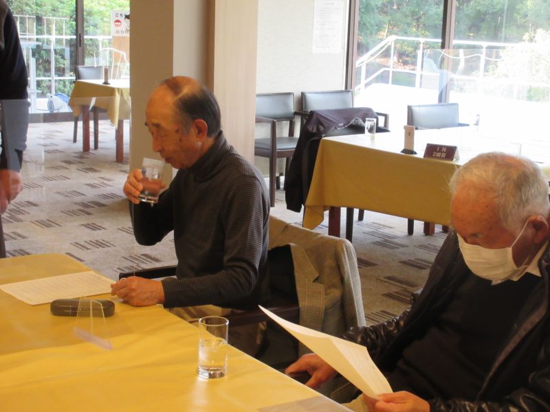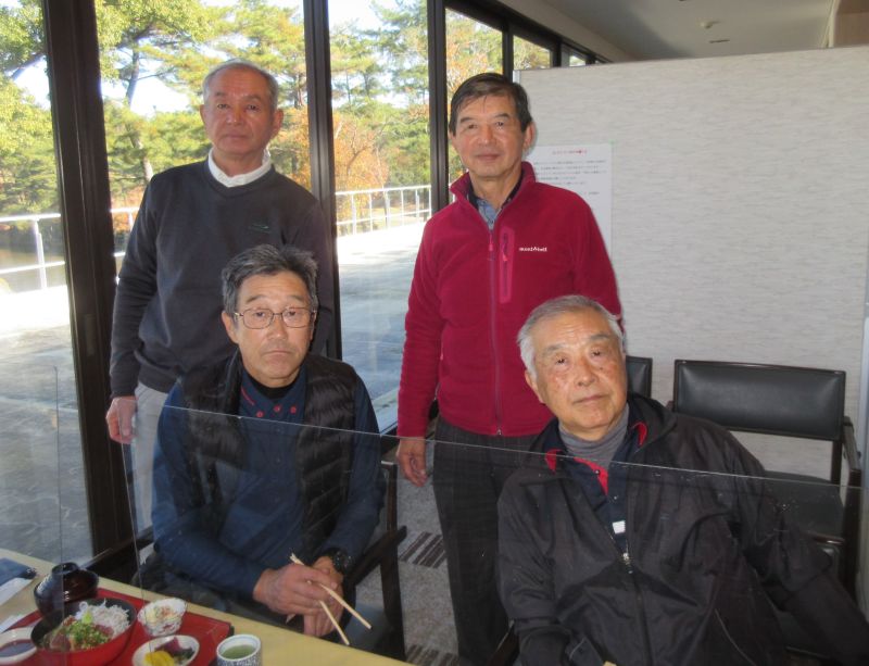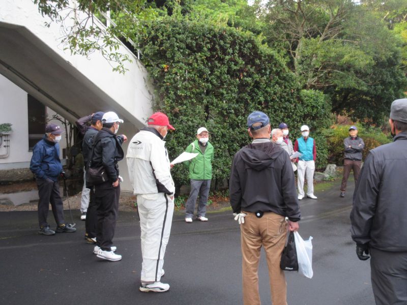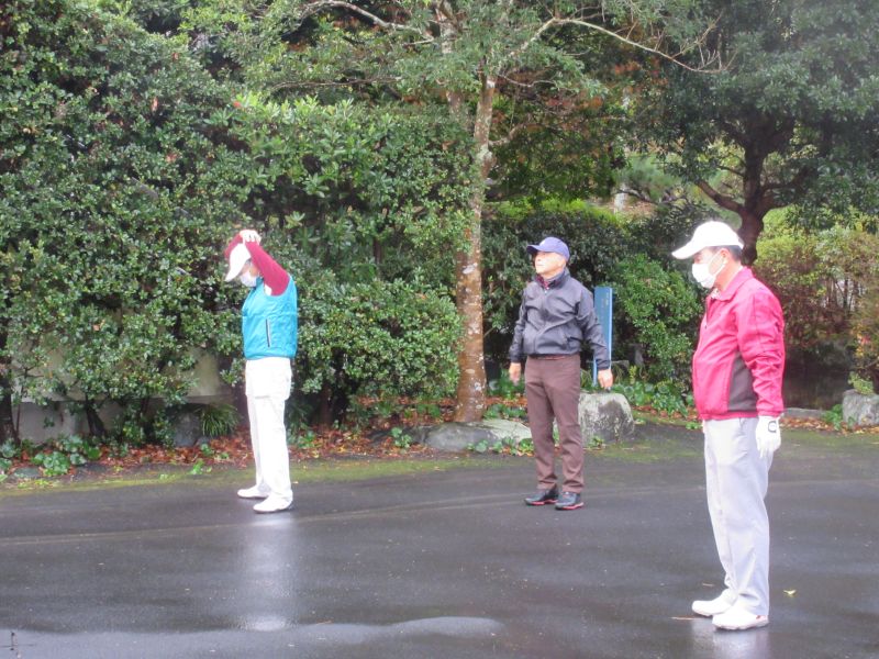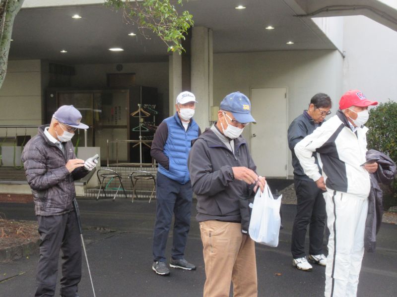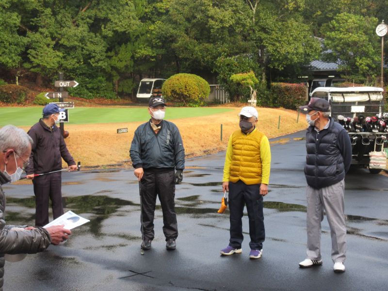 コロナ禍の中、松愛会静岡支部の活動も停滞気味で会合や同好会も中止が相次ぐ中、しょうぶ会は年間計画通り 12月のコンペを17日(金)静岡カントリークラブ袋井コースで22名の参加を得て開催 前夜遅くからの雨を気にしながら集まった参加者も集合時間には雨も上がり 練習グリーンで練習を開始、このころには少しだが青空も見えてきた。皆さん、笑顔の中 開会式を始め、新加入の照井さんの自己紹介 コロナ防止対策への注意事項に続き昨日焼津で仕入れたカニを始め各賞を紹介し、気合の入ったストレッチ体操を行いマスクを外して集合写真撮影後、OUT/INに分かれてスタートして行った。(会長の挨拶を忘れた・・・ゴメン)