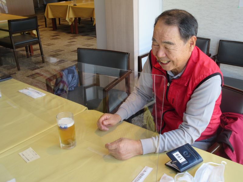 - 27.一人ビールを前に笑顔の古屋さん