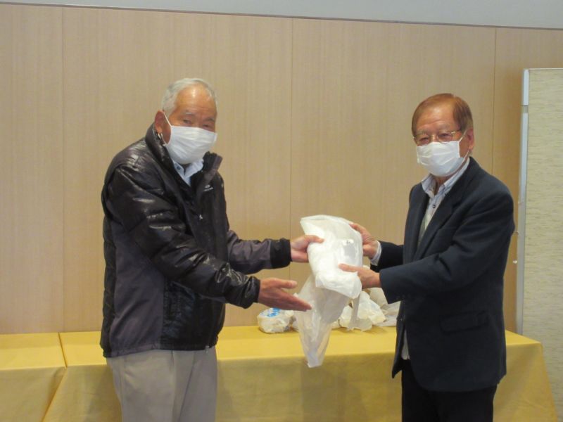 並松会長が当たりくじを引き当て大喜び、代わりに自宅で収穫した「ゆず」を全員に配布。