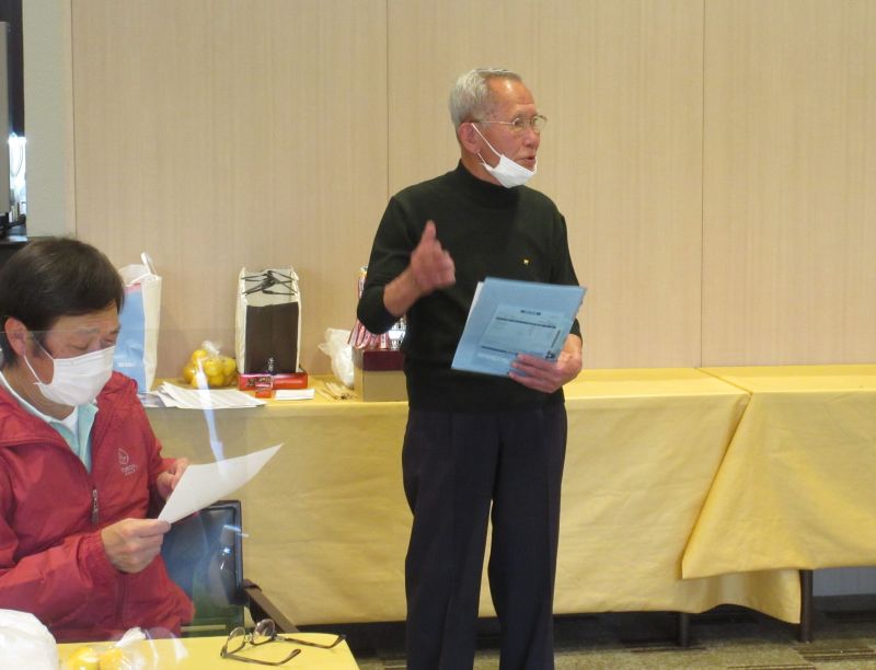 幹事から、今年も車いすを森町の「よろず庵」に寄贈できたことを報告 資金管理状況の報告と、プルタブ収集への協力を呼びかけ、次年度の開催場所の確認では幹事一任でまとまった。
