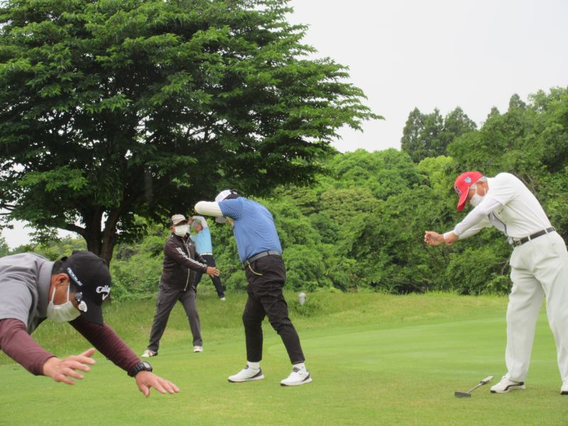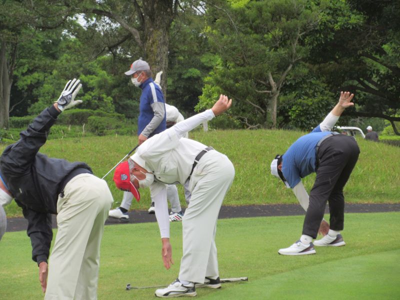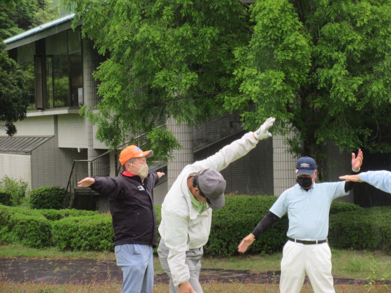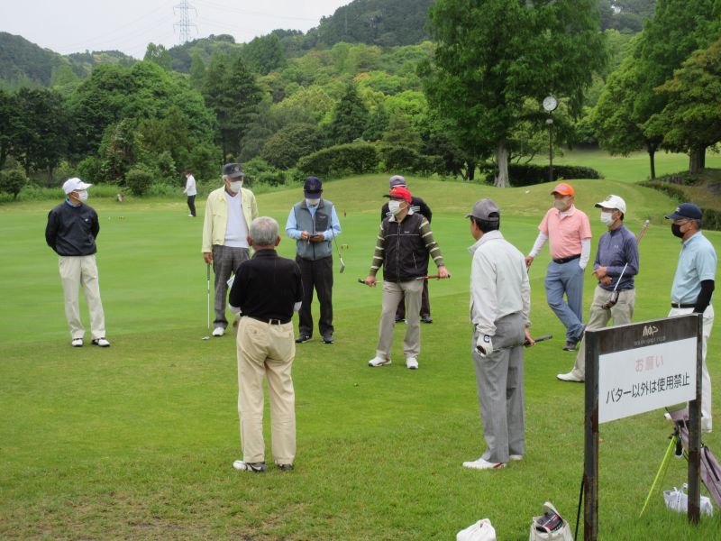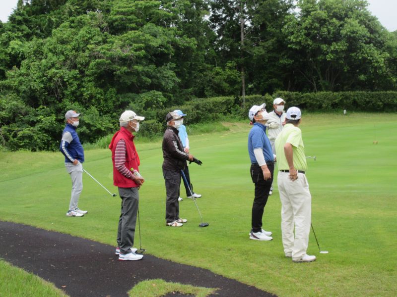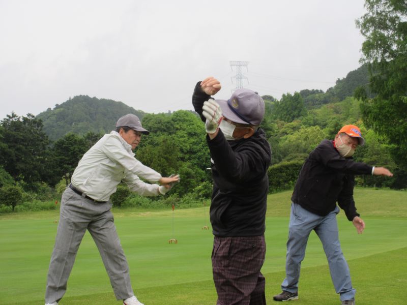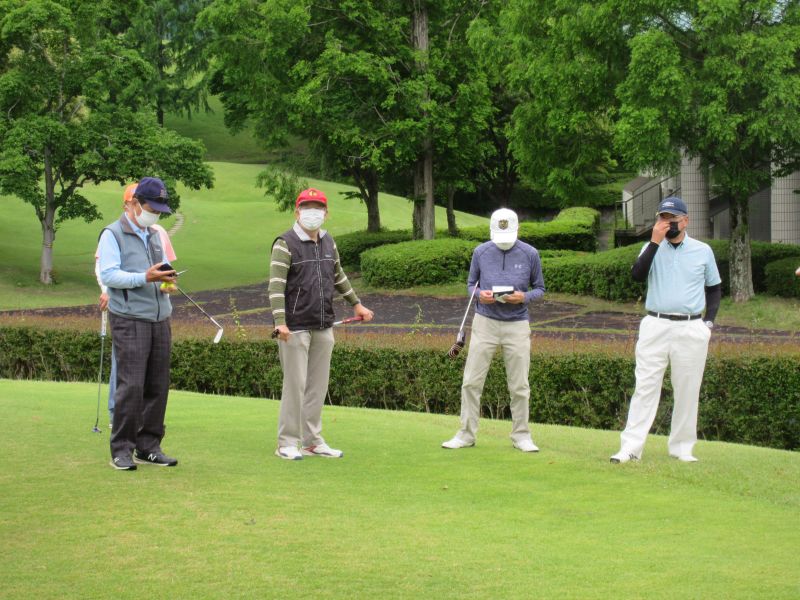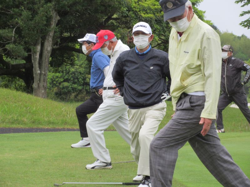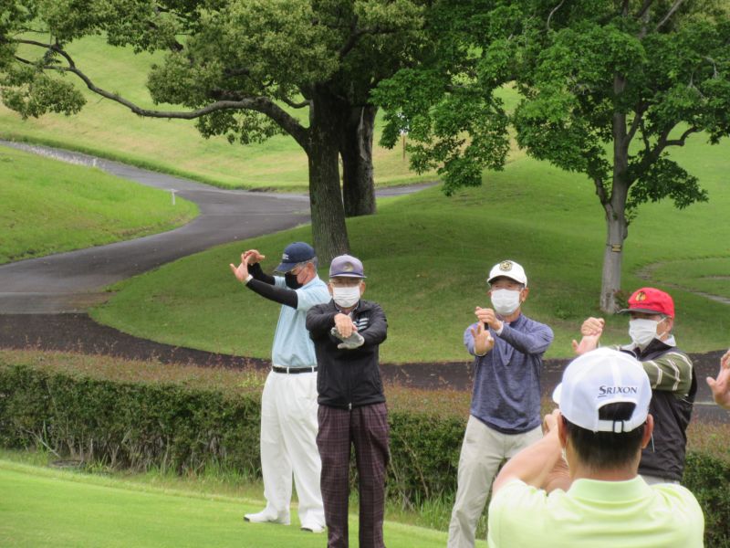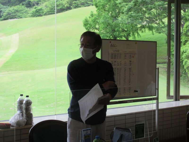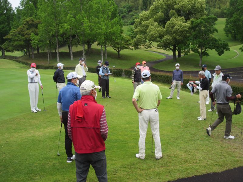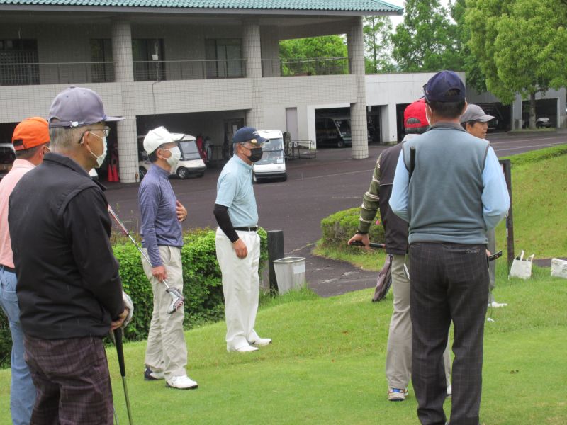 松愛会静岡支部の2022年度年次大会が5月14日(土)約50名の参加で3年ぶりに開催 議案審議・懇親会を無事に終えた2日後 5月16日(月)私達しょうぶ会はそぼ降る小雨の中、菊川市のホロンゴルフクラブに20名の参加を得て第188回ゴルフコンペを開催した。並松会長の挨拶の後、幹事からコロナへの注意事項 本日の各賞を披露し、寺澤さんによる体操を行い、マスクを外して集合写真撮影後 OUT/INに別れて順次スタートして行った。