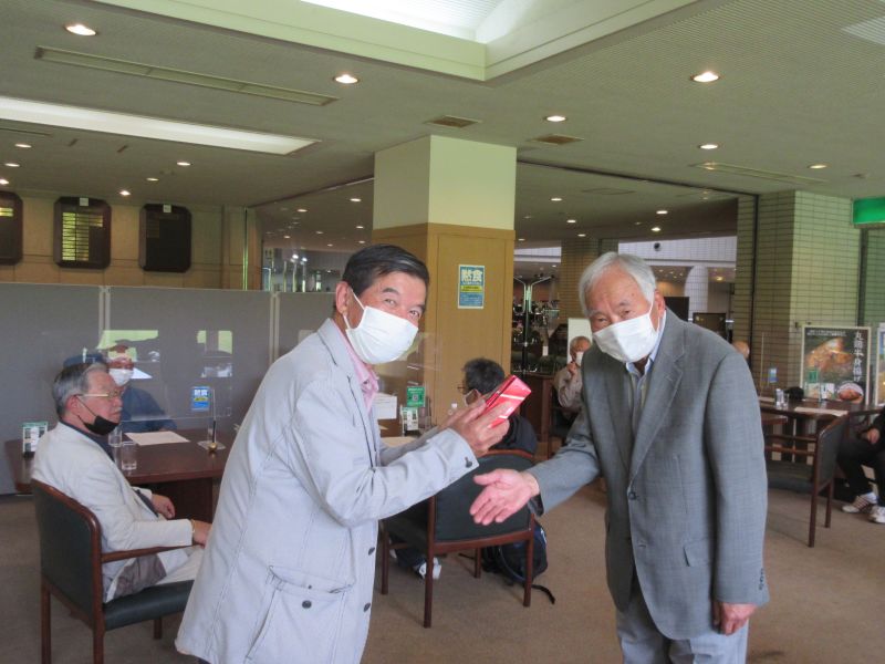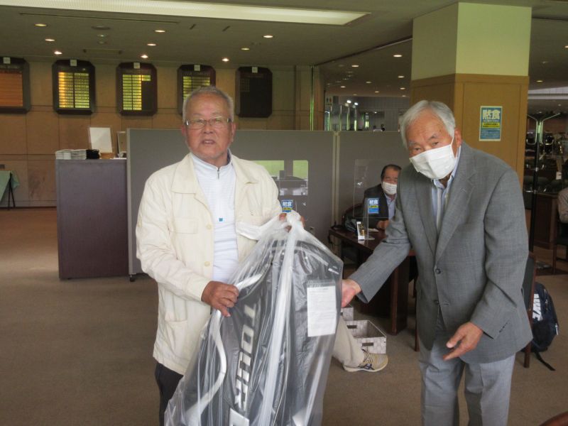 結果は、グロス‟79”で回った高木(善)さんがぶっちぎりの優勝、準優勝にハンデを生かした寺澤さん、3位吉野さんがそれぞれ入賞。特に、高木(善)さんは三つのニアピン賞で優勝に花を添えた。又、ラッキーセブン賞のゴルフ場提供キャディバッグを久しぶり参加の山根さんが笑顔で持ち帰った。