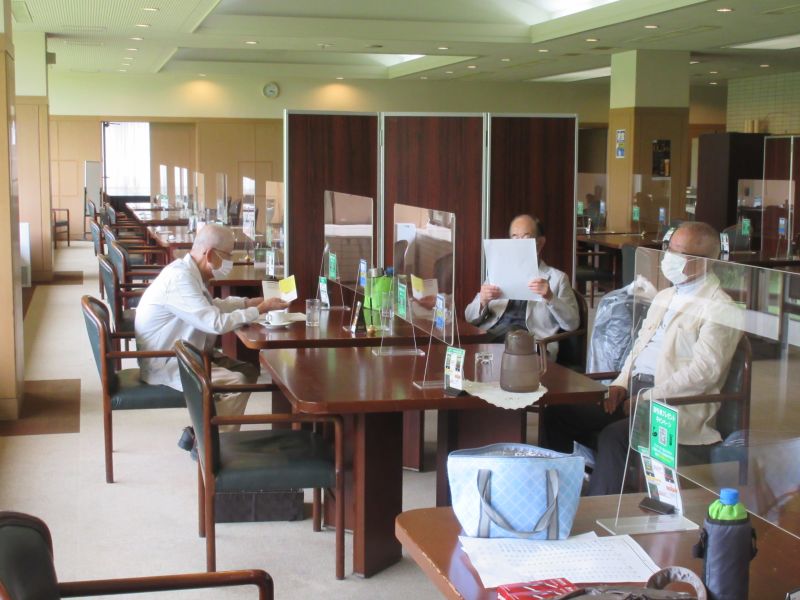 - 昼食時の光景 (左から)高木(修)さん、石井さん、福田さん、松浦さん