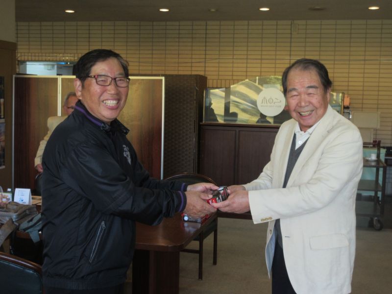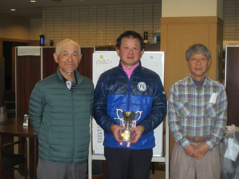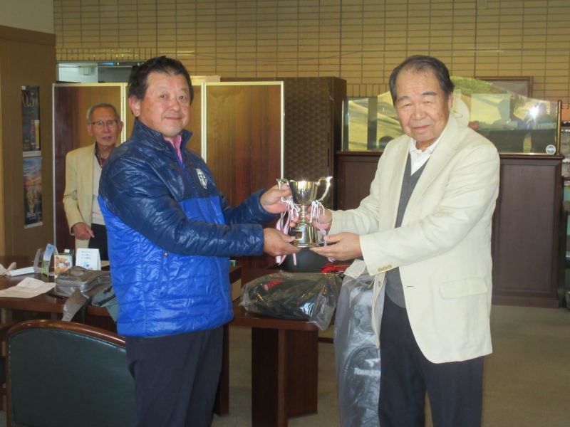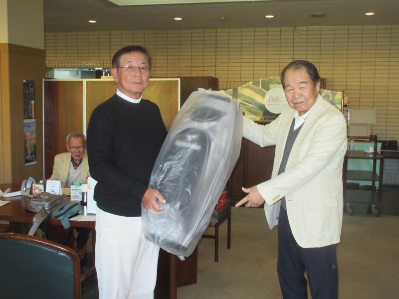 そのような気象条件でも実力者は冷静に自身の技を信じてスコアをまとめてくるのには感心させられる。結果は、今回2回目の参加 深田さんが最上位だったが、残念ながら繰り下げ4位で、繰り上げ優勝を高橋さんが勝ち取った。準優勝には 常に優勝しか考えていない裾野から参戦の鈴木(剛)さん、3位にハンデが生きたか?豊田さんがそれぞれ入賞した。優勝の高橋さんは、「風が強く我慢のゴルフに徹した事が良かった」と、4回目の優勝にご満悦。ゴルフ場に無理を言って提供して頂いた、キャディバッグを高木(善)さんが、更にステキなボストンバッグを藤井さんが持ち帰った。