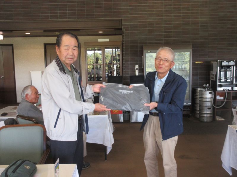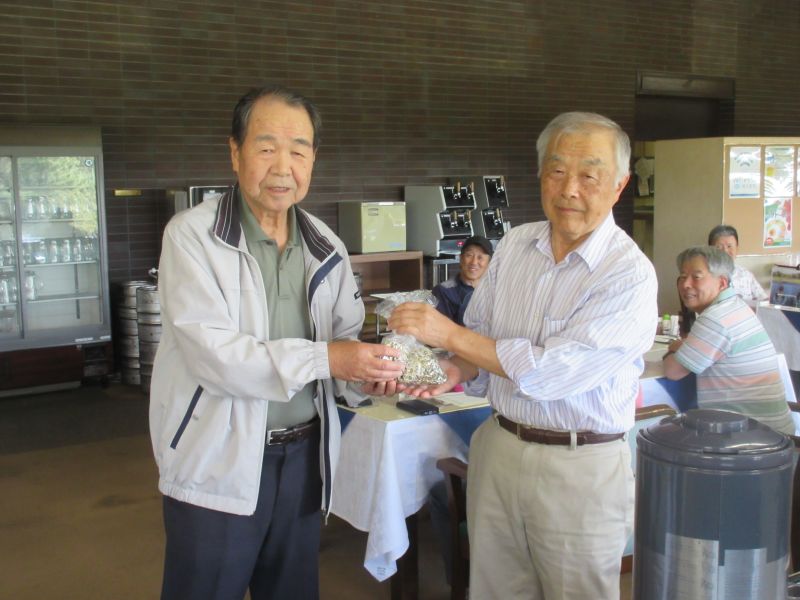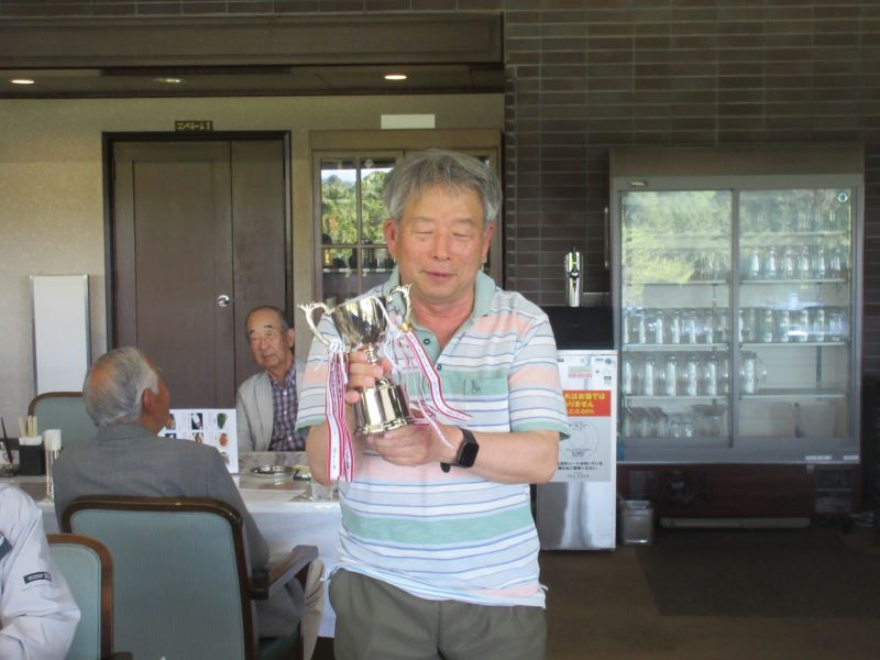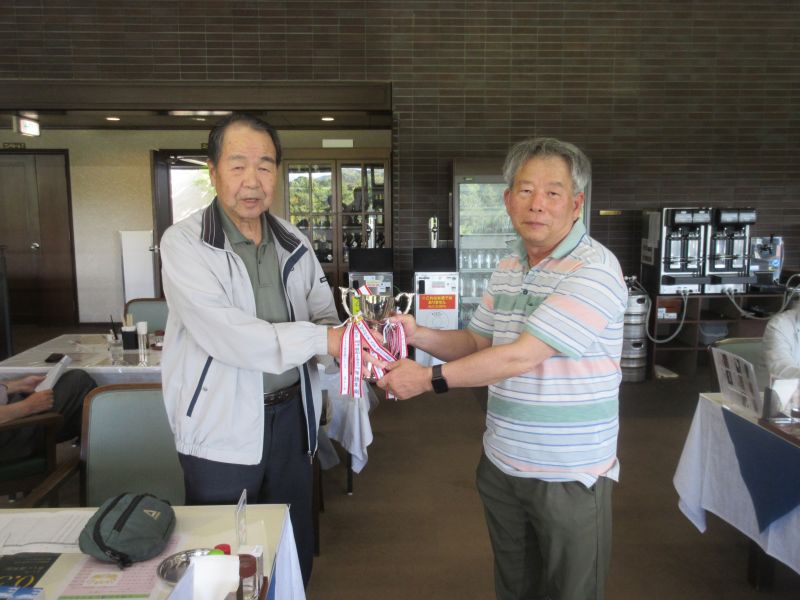- 古屋会長から優勝カップを受ける小林(健)さん