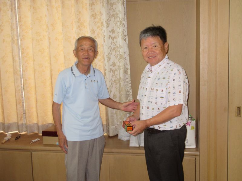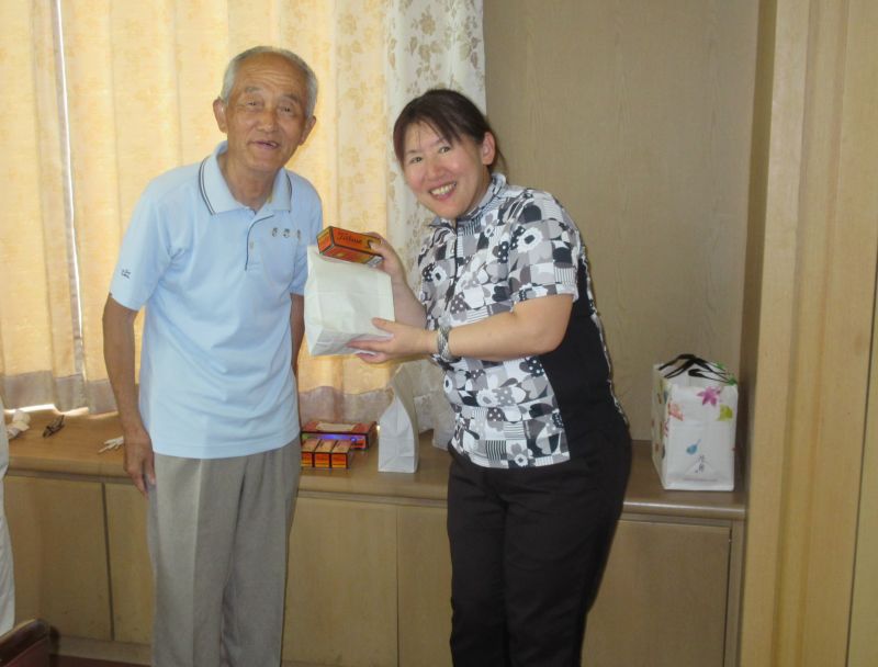 - 長老の藤井さんから優勝カップを受ける寺澤さん