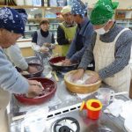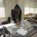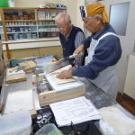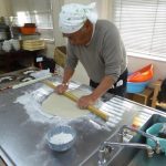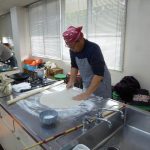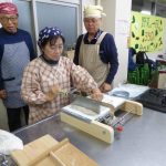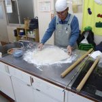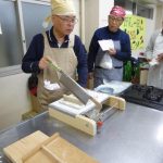 もう一つの悩み、そば切り・・・なかなか均一に切れないとの不満解消のため、裁断機を購入した。 このことにより、均一に切れる問題は解決したが、慣れないせいもあり時間がかかるのと、一台しかないため24名分を作業するのに、行列ができる状態だ。 包丁を使用して、腕を磨きたい方は進んで包丁を使用していただくことにする。