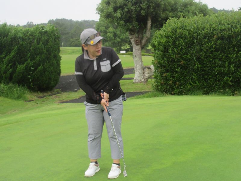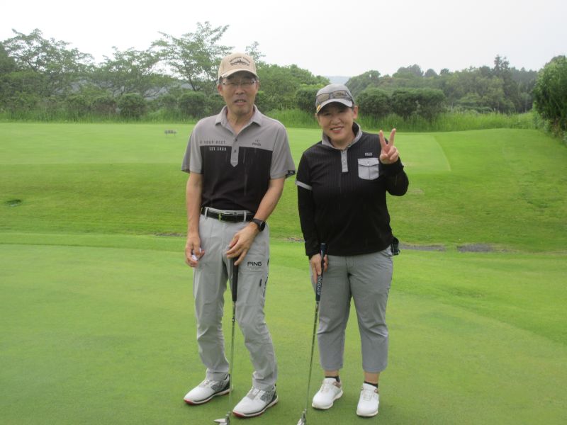 - 練習グリーン上でのスナップ 深田さん・石川さん