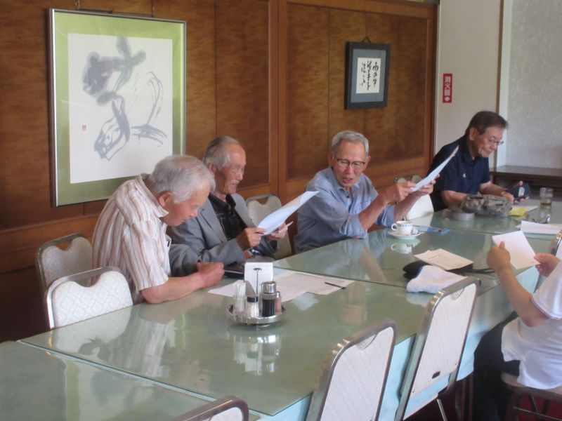 最後に幹事から、プルタブ収集の打ち切りと、夏の2か月しょうぶ会の休会を伝えてお開きとした。