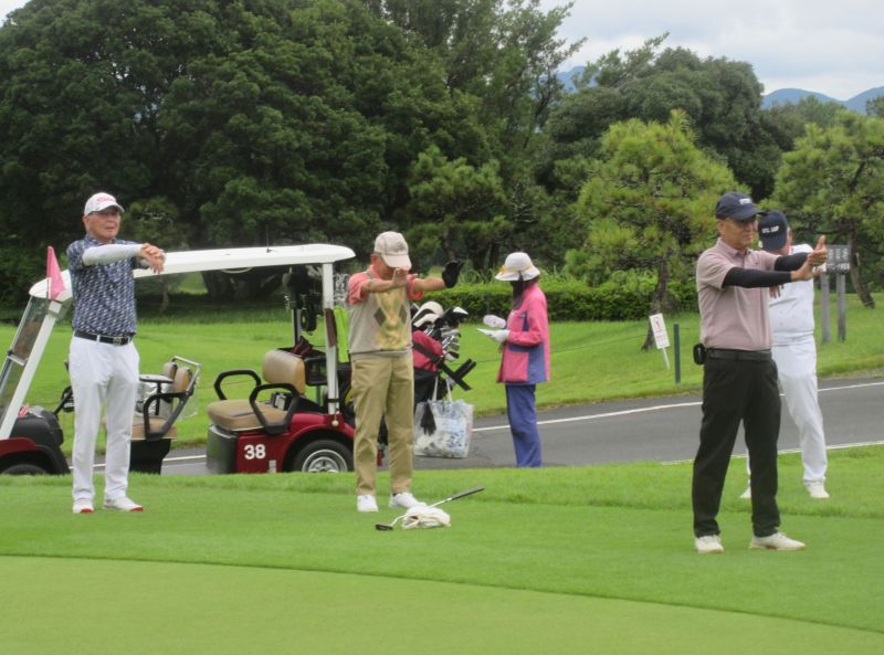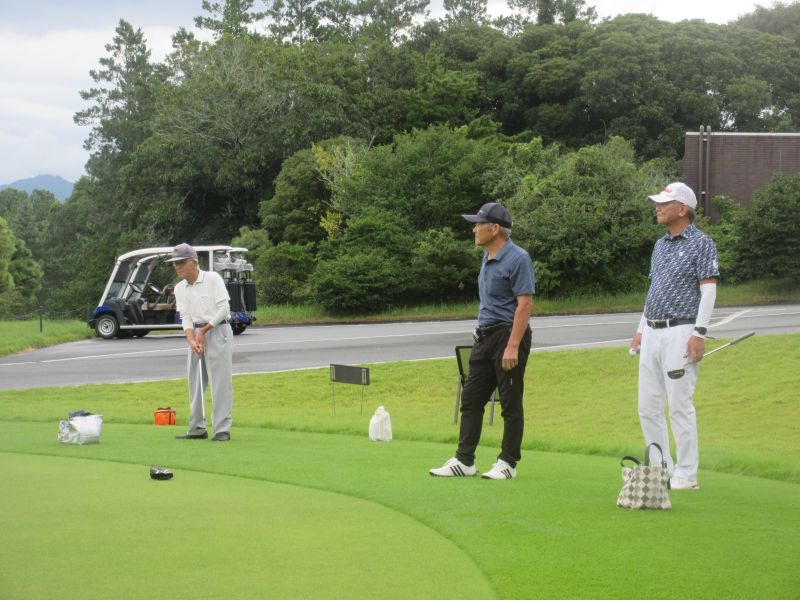 開会のセレモニーと集合写真撮影を終え、まだ小雨の降るフェアウェイに白球を打ちこんで行った。