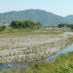 ◇ 小屋敷公園から県道224号線を北へ約800m程行き、瀬戸川に架かる「豊田橋」を渡っていると右前方に501mの「高草山」が見えました。橋の上から瀬戸川の下流方向の景観は素晴らしく、山なみが映えていました。橋を渡ると橋詰から田中城下屋敷まで、約700mの距離でした。