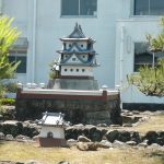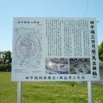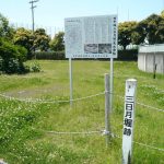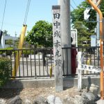 ◇ 田中城本丸跡 下屋敷跡の冠木門から400m程の所に藤枝市立西増津小学校があります。付近には、田中城三日月堀跡や三日月堀(馬曲輪)があります。西増津小学校は、田中照の本丸跡に建てられました。校門前には「田中城本丸跡」の標柱があり、中庭に本丸のモニュメントがあります。田中城跡を離れ、1.2km先の藤枝成田山へ向かいました。