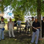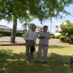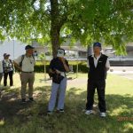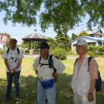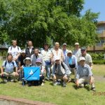 ◇ 晴天に恵まれた5月25日(土) の朝、東部地区の会員2名、西部地区の会員12名、ご家族1名、友人1名、合せて16名がJR西焼津駅北口に集合。挨拶を交わした後、駅前から東へ200m余りの小屋敷公園へ移動。リーダーからコース説明、注意事項、支部役員から支部行事の日程説明などの後、集合写真を撮り終え、史跡田中城下屋敷へ向いました。