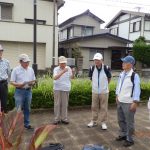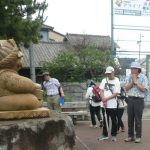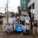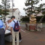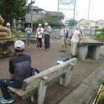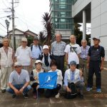 ◇ 誰もが降雨を心配しながら、湖西市にお住いで初参加の浅野会員を含む、西部地区の会員12名、友人1名、合せて13名がJR舞阪駅の南口広場に集合。リーダーからコース説明、注意事項、支部長から支部情報、行事説明、初参加の浅野会員から自己紹介の後、集合写真を撮り終え、200m余り南通る旧東海道に向けスタート。