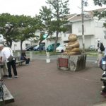 ◇ 浪小僧:松並木が途切れた所に「遠州の七不思議」の一つ、「浪小僧」の像があります。むかし漁師が地引網漁をしていた時、海の底に住む浪小僧が網にかかった。浪小僧は助けてもらったかわりに、海が荒れ、風が強くなる時は波の音で知らせるようになったと云われています。浪小僧の像広場でひと息入れた後、旧東海道を更に西へ舞阪宿方面へ向う。