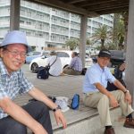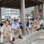 ◇ 弁天島を湖畔沿いに周遊しゴールのJR弁天島駅に到着。心配していた降雨もなく、無事故で全員が元気よく完歩出来たことを労い、弁天島駅の広場で解散しました。なお、有志5名は駅前の弁天島海浜公園へ再度行き、ファーストフード店で反省会? 冷たくて、スッキリする飲み物で、喉を潤してから約1時間遅れの列車で静岡方面、豊橋方面にそれぞれ帰途に着きました。