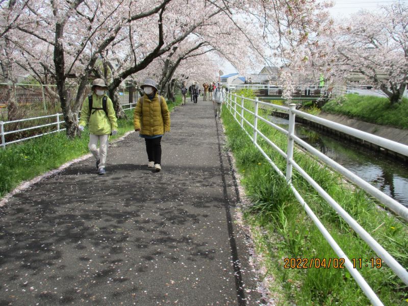今回は「旧東海道の宿場町藤枝市の歴史ウォーク」と題し、サッカーの町としても有名な藤枝市を散策しました。JR西焼津駅に集合し、14名の参加をいただき、藤枝市内の史跡・田中城下屋敷、蓮華寺公園、大慶寺、静岡鉄道駿遠軽便軌道跡を散策して、JR藤枝駅にゴールしました。当初の開催予定が3月26日でしたが、雨天のため1週間後の4月2日にしました。1週間遅れたおかげで、行く先々で桜が満開の状態で、川沿いの桜並木、桜ドームなど桜に囲まれた散策となりました。