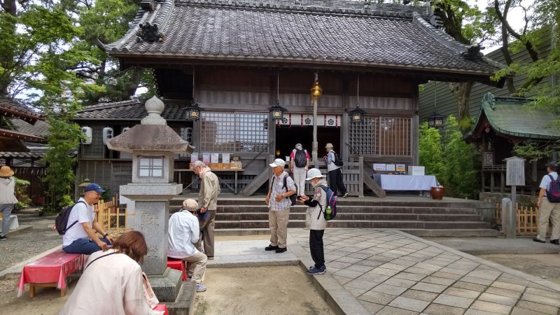 名鉄電車の東岡崎駅をスタートし北へ進み、乙川を渡り高層マンションの谷間にある岡崎最古の菅生神社へ。ここは家康が25歳で厄除け・開運祈願で造営を行って以降、歴代岡崎城主の祈願所になったといわれています。