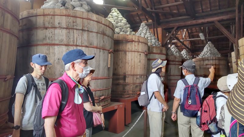午後は岡崎城から八丁(約900m)西にある八丁味噌蔵へ行き、資料館で八丁味噌の作り方説明や歴史的資料を見学。また実際の味噌樽が並んだ味噌蔵の光景を見てきました。