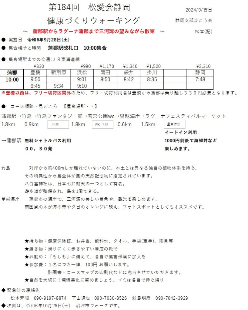 9月28日(土)は 第184回歩こう会 の開催日です!