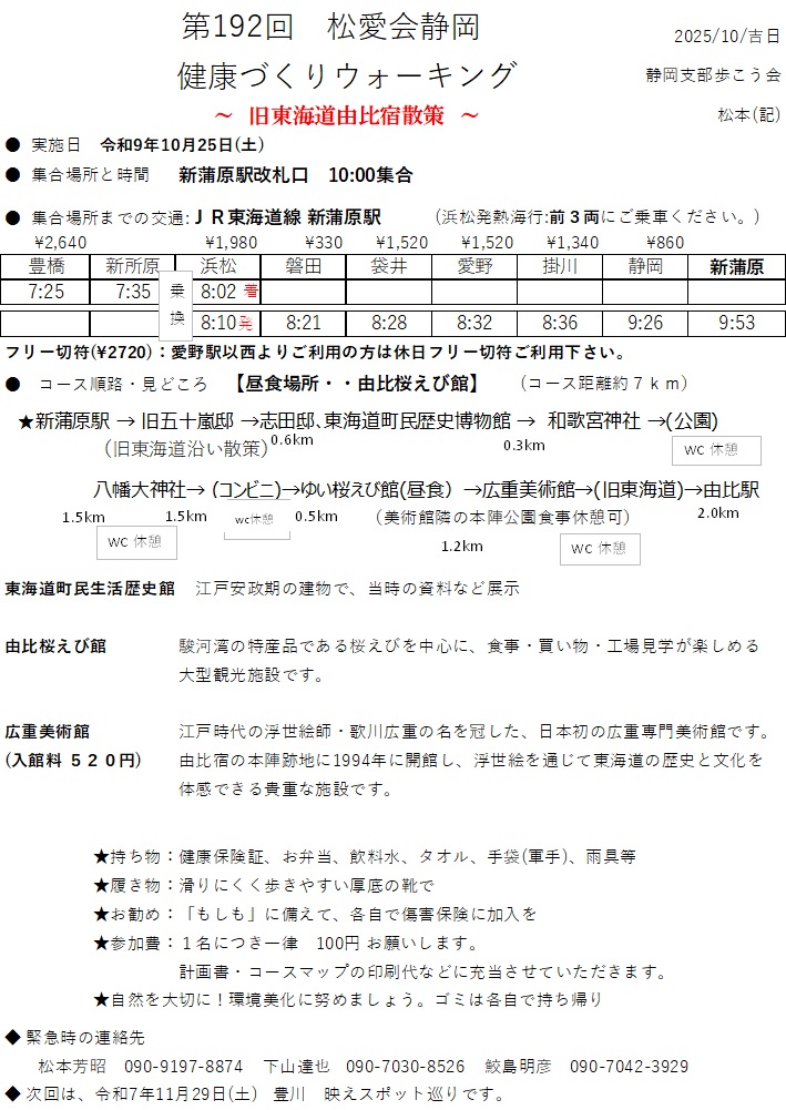 10月25日(土)は 第192回歩こう会 の開催日です!