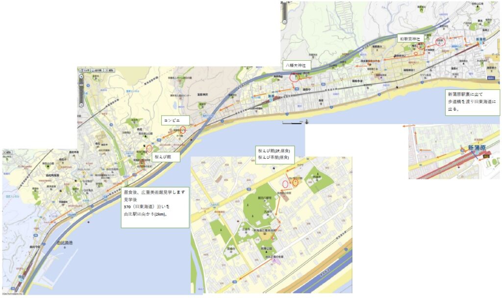 ★新蒲原駅 → 旧五十嵐邸 →志田邸、東海道町民歴史博物館 → 和歌宮神社 →(公園)