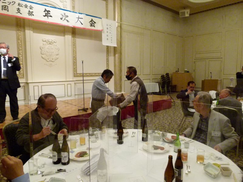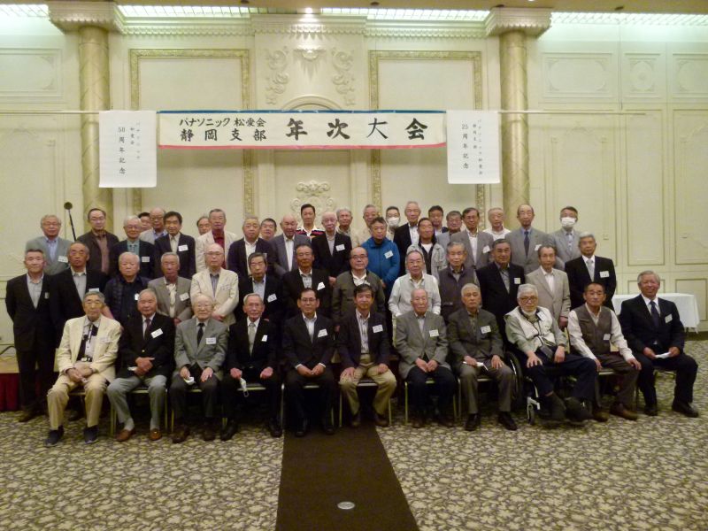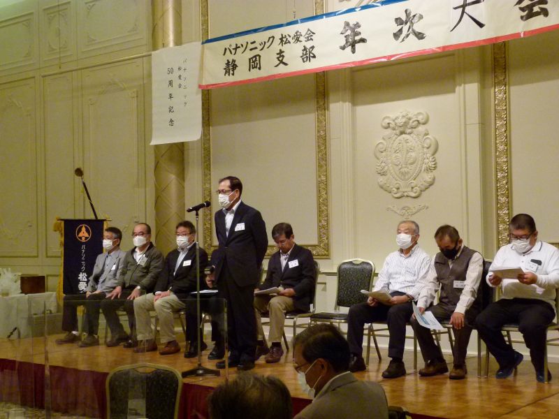 白石支部長挨拶の後、次第に従い昨年度の活動報告と新年度の活動計画を報告し満場一致で承認されました。特に今年は松愛会50周年、静岡支部25周年の年であり記念行事などを行う予定です。 その後退任される役員、お世話役の方に記念品を贈り労をねぎらい、最後に石井副支部長の発声で松愛会スローガンの唱和を行いました。