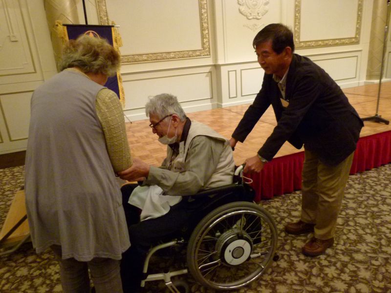 会場入口に社会貢献活動の年末行事の「車椅子などの希望品贈呈」の一助となるようバザー品と募金箱を設置。多くの会員の皆様から善意のご寄付をいただきました。