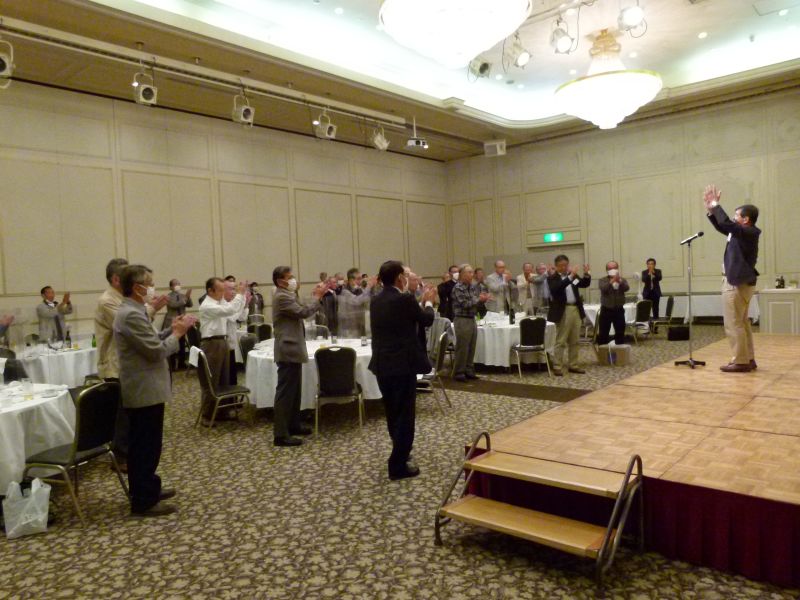 続いて懇親会は下山さんの司会で進行。支部長挨拶、佐藤さんの乾杯の音頭でスタートしました。支部大会の懇親会としては3年ぶり、2020年1月の新春懇親会以来の懇親の場で皆さん久しぶりに交流を深めました。