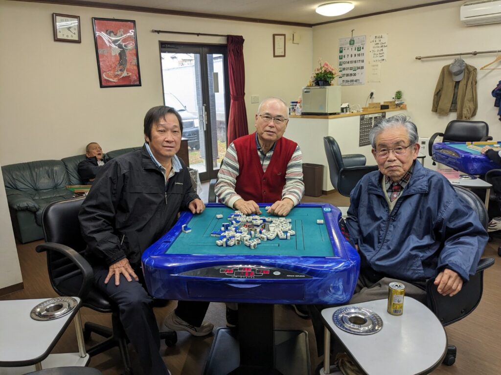 今回は14名の参加 四人打ち2卓 三人打ち2卓でスタートした。