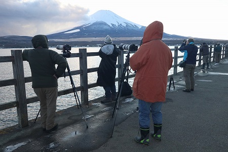 その後、山中湖へ戻りダイヤモンド富士の撮影に挑戦しました。 各自、試し撮りを繰り返しながらの撮影でした。