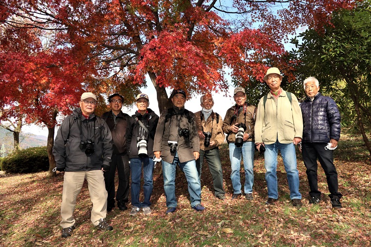- 紅葉の前で集合写真