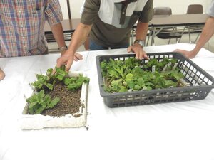 藤本さんが60本、荒武さんが40本、川久保はポット上げ実習用に9本夫々持参した。(写真参照)