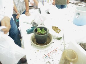 - 直接定植1、ゴロ土1cmの上に、培養土大カップ1杯(FMさん指導、MNさん挑戦)