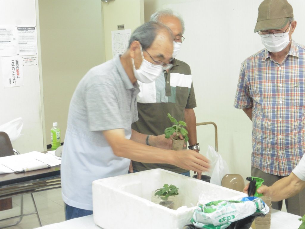 藤本さんが60本、荒武さんが40本、川久保はポット上げ実習用に9本夫々持参した。(写真参照)