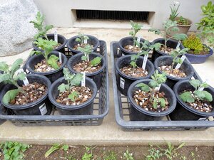 (最初の6枚は育成手順を示す。次の6枚はお二人のお宅で苗を戴いた時の写真。以下は各氏の鉢上げ状況)