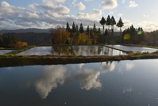 ●新潟のブナ林と棚田、初冬の風景を撮影