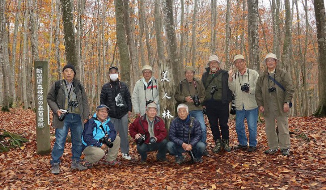 早朝6時半に藤沢を出発し一路新潟へ。まず最初に、新潟信濃川近くのブナ林へ昼前に到着。雨上がりの紅葉の盛りを過ぎたブナ林は人影もほとんどなく、ひっそりとしており絶好の撮影条件に、メンバ-一同大満足。その後収穫の終わった棚田を回り松之山温泉の常宿へ。