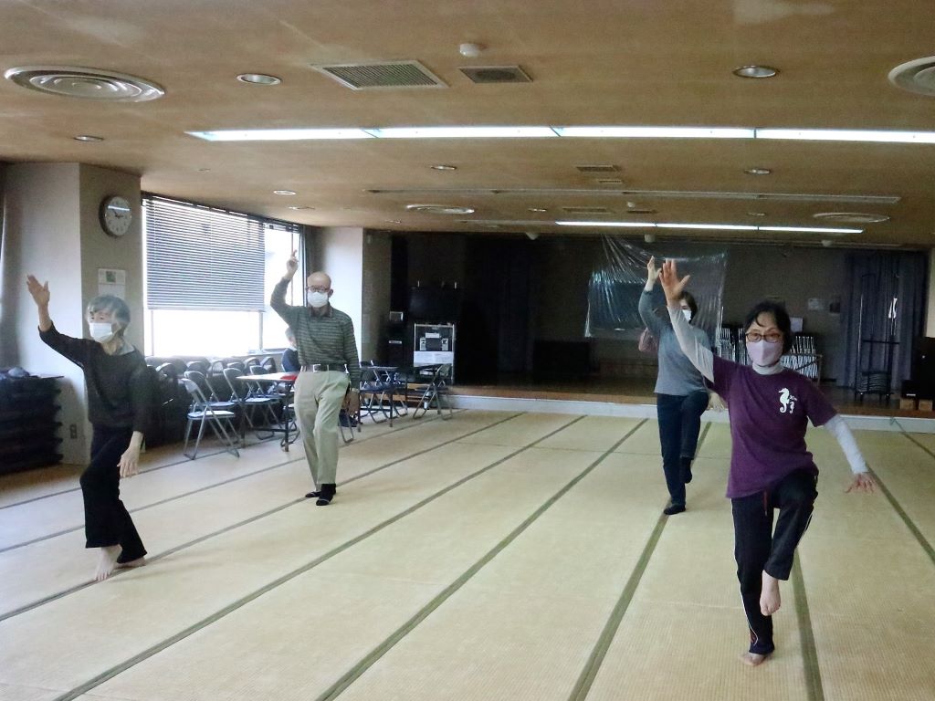 今回も太極拳の各動作を研究するための撮影を重点的に行った。今回は大広間(100畳畳敷)での実施で照明が十分でなく画像が不鮮明でした。