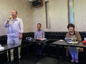 例会は全員揃った段階で全体会合をして諸連絡と久しぶり参加の駒井さんの近況報告がありました。