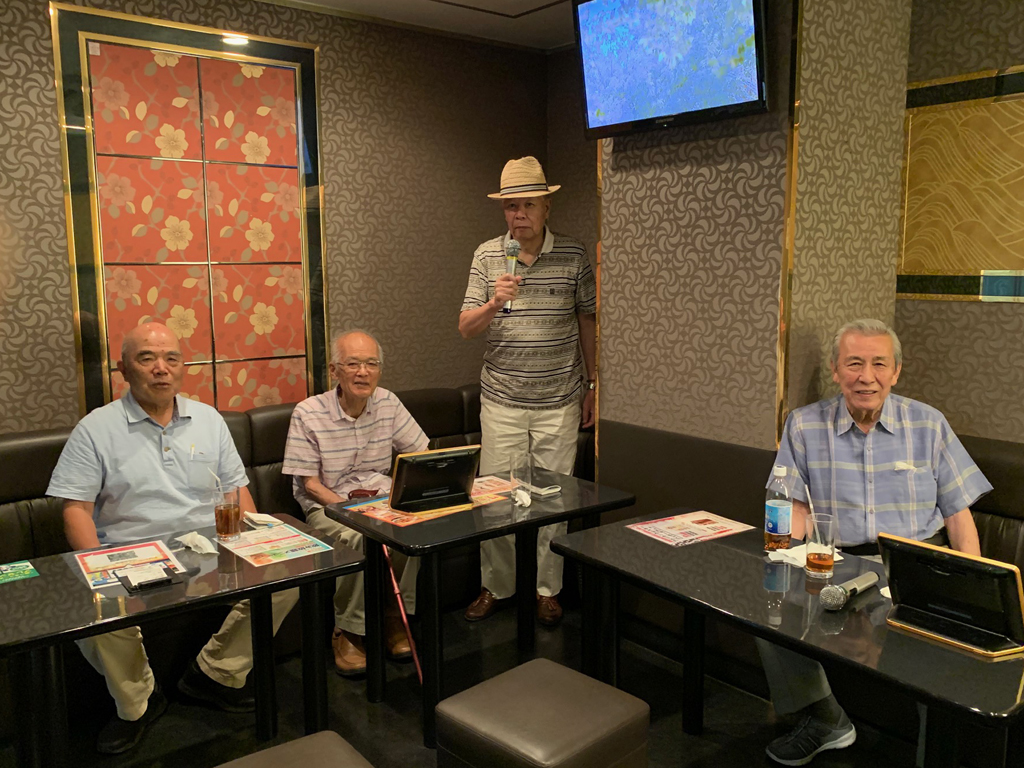例会は全員揃っての会合で浦田支部長から支部総会の参加の御礼と7月15日(土)の都市対抗野球バス配車での応援参加の依頼がありました。また世話役より次回例会のコロナ後、初カラオケ大会の概要と参加依頼の後、集合写真と7人の持ち歌披露があり。その後各部屋で元気いっぱいに大会に向けての練習をしました。今回の持ち歌の披露は前回発表しなかった7名が席順にそれぞれ近況報告と歌の披露をして頂きました。今後も全体会合のあと近況報告と持ち歌披露は継続した企画とします。尚、今後も感染対策は自己責任で感染0件を目指していきます。本日の持ち歌の披露7人は松本さん・中代さん・井川さん・阿部さん・南野さん・石原さん・増田でした。