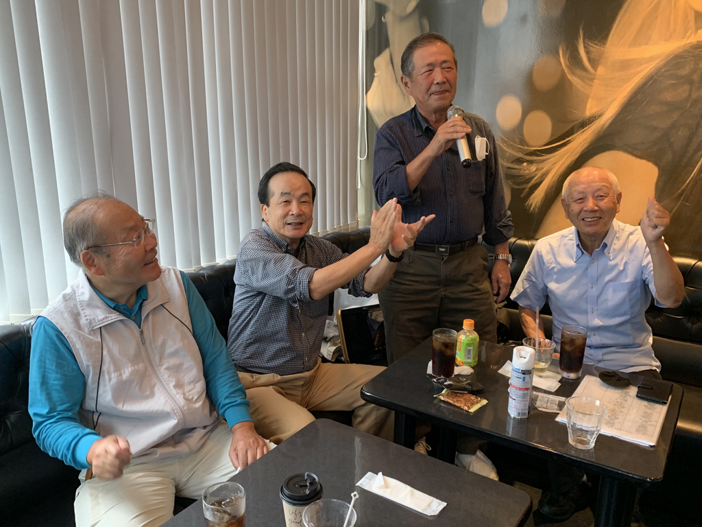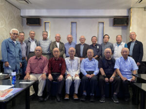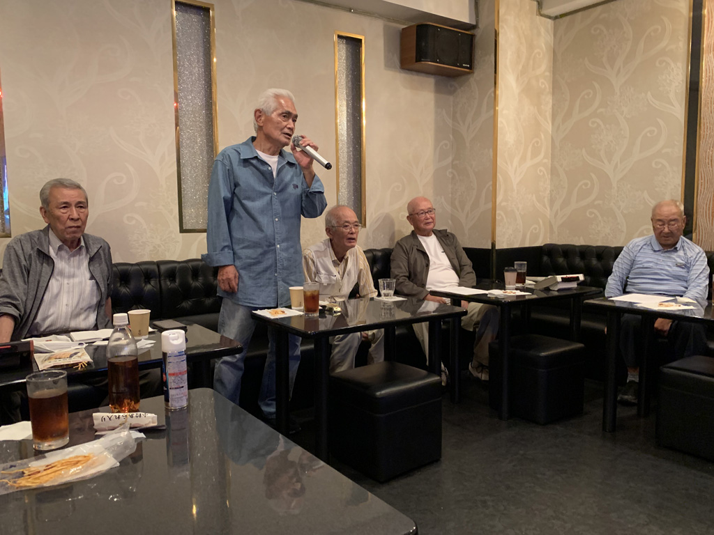 ようやく過ごしやすい秋を迎えて、参加の皆さん今日も元気に、感染対策を継続しながら17名での例会開催となりました。例会は全員揃ってのミーティングで世話役挨拶、石原副支部長から沢山の支部行事の案内がありました。そして五十嵐さんから近況報告の所感、そして何時もの持ち歌披露の5名の発表と全員集合の写真撮影がありました。その後4部屋(301・302・303・308号室)に分かれて元気いっぱい存分に歌いました。今後も感染対策は自己責任で感染0を目指していきます。今回の持ち歌披露は、席順に蒔野さん・雨宮さん・西村さん・松富さん・駒井さんの5名でした。