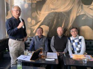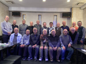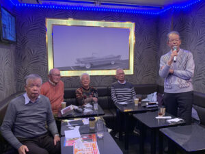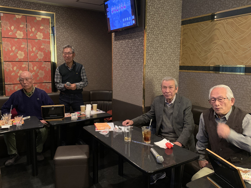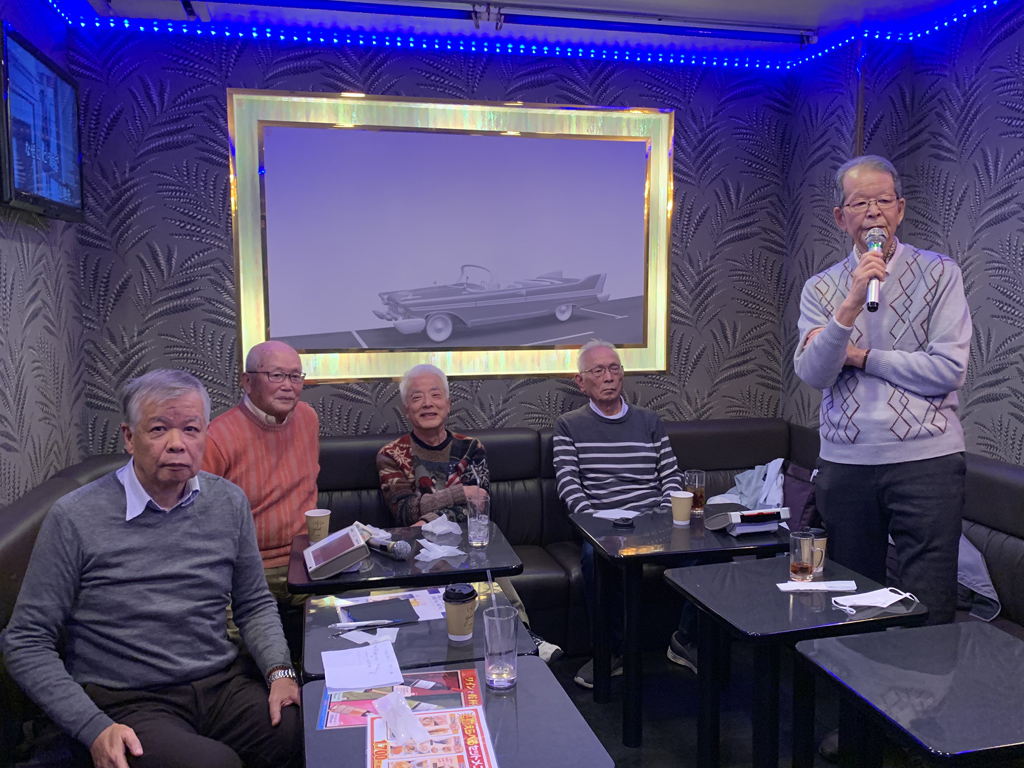 今年最後となったカラオケクラブ例会は、前回のカラオケ大会に続いてみんな元気に、自己責任での感染対策を行いながら18名の参加での開催となりました。例会はほぼ全員揃った段階でのミーティングで増田世話役挨拶と石原副支部長の挨拶と活動の近況報告がありました。また本日、前回の安達さんに続いて、新会員として『日塔憲夫』さんが参加されて入会の挨拶をしていただきました。持ち歌披露の前、喉慣らしとして1月20日新春懇親会の合唱曲『1月1日』『これから音頭』をみんなで合唱してから、5名の持ち歌披露の発表と全員集合の写真撮影がありました。その後、今日も4部屋(301・302・303・308号室)に分かれて元気いっぱい存分に唄いました。今日の持ち歌披露は、席順に南野さん・安達さん・中代さん・石原さん・増田さんの5名でした。